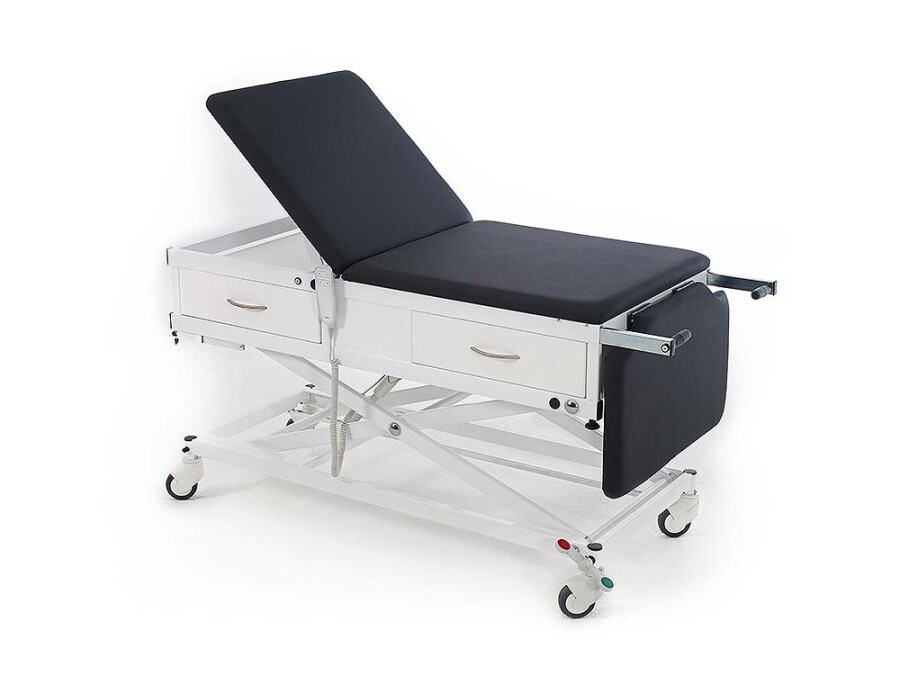 Eine professionelle Untersuchungsliege, die in medizinische Räume für Vorsorgeuntersuchungen und Konsultationen passt.