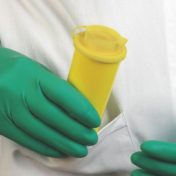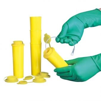 Mit universellen Entnahmehilfen (auch ideal für Skalpelle) zur Entsorgung aller gängigen Kanülen, Skalpelle, Blutpipetten und Skalpelle. Mit innovativem Tagesdeckel und Endverschluss. Einhandbedienung des Tagesdeckels im Arbeitsalltag: Auf flachen Knopfdruck öffnet sich der Tagesdeckel automatisch. Die Box kann mit einer Wandhalterung (Nr. 95.963.001) befestigt werden. Gemäß TRBA 250, UN 3291 und ISO 23907.
