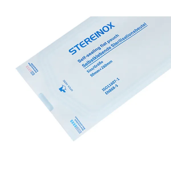 Der selbstdichtende Sterilisationsbeutel von Stereinox ist ein wirksames und sicheres Werkzeug zum Sterilisieren medizinischer Instrumente und Geräte. Der Beutel besteht aus ARJO Medical Dialysepapier (70 g/60 g) und einer transparenten PET/CCP-Laminatfolie und ist mit ungiftiger und umweltfreundlicher ISO11140-1-Tinte versehen.