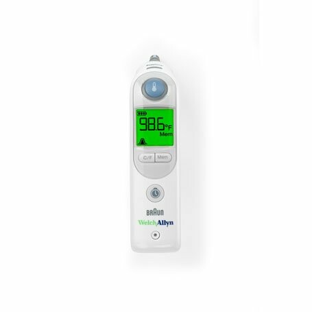 Braun ThermoScan® Pro 6000: bietet die Schnelligkeit und einfache Bedienung, die Sie für präzise, zuverlässige und für den Patienten angenehme Temperaturmessungen benötigen. Der entscheidende Vorteil des Braun PRO 6000 liegt in der innovativen PerfecTemp Technologie. Mit der PerfecTemp Technologie werden die Faktoren angepasst, die die Messgenauigkeit beeinflussen, wodurch die Möglichkeit von zu geringen Messwerten im Vergleich zur Kerntemperatur beseitigt wird. Das schlanke Design erleichtert Reinigung und Desinfektion. Erweiterte Sicherheitsfunktionen schützen vor Verlust und Diebstahl und maximieren Ihre Investitionen. Speicherabruftaste und 60-Sekunden-Timer zur Pulsmessung verbessern die Effizienz der Mitarbeiter und die klinischen Arbeitsabläufe.