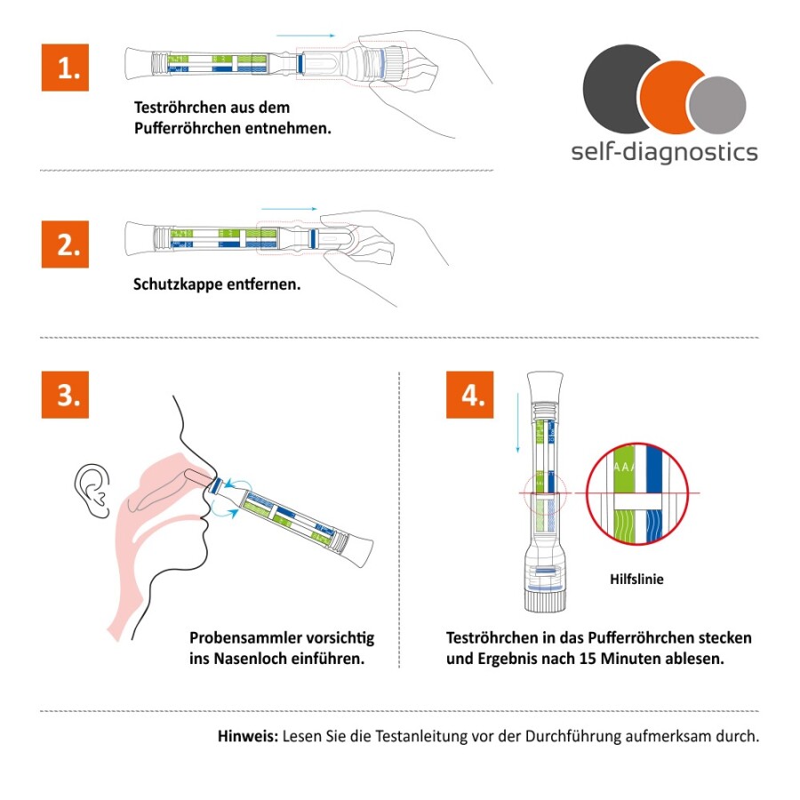 - Persons aged 14–17 years may perform sample collection and testing themselves under the supervision of an adult (18–60 years). The supervisor must ensure that the user has fully understood the instructions and check that the kit is used correctly.