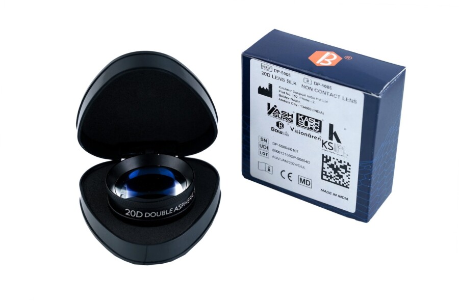 The diagnostic aspheric lens Double- 20D– is a high-quality optical instrument for ophthalmologists, optometrists and clinical specialists. Designed for use with a slit lamp, this lens provides a sharp, clear, and distortion-free image of the posterior segment of the eye, including the retina, macula, and optic nerve.