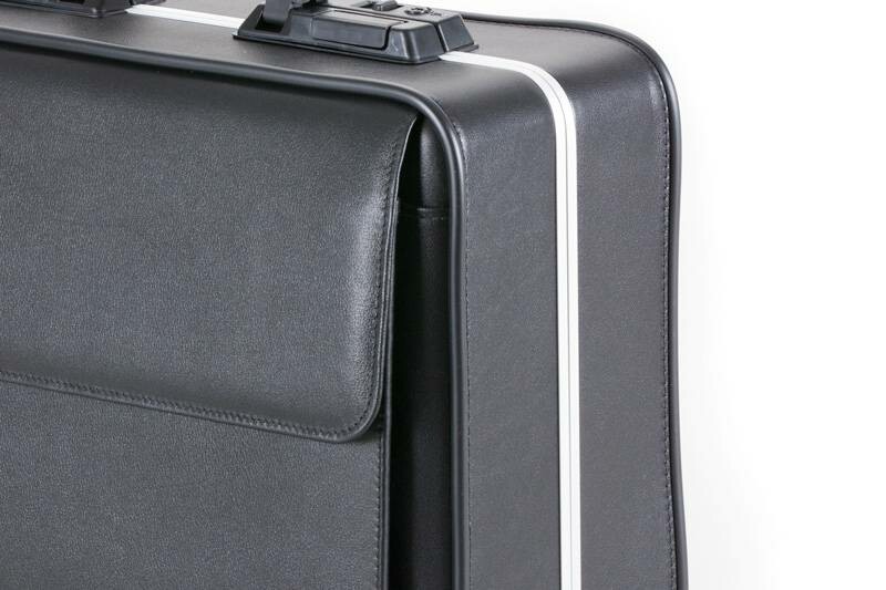 This bag features a practical external side pocket with room for A4 documents or a notebook. Available with artificial or genuine leather with plastic edges as protection.
