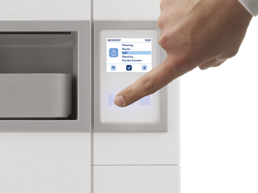 Ensures excellent performance in speed, safety, and sterilisation. Improves water consumption by calibrating based on the load and provides perfect drying in synergy with the heating elements.