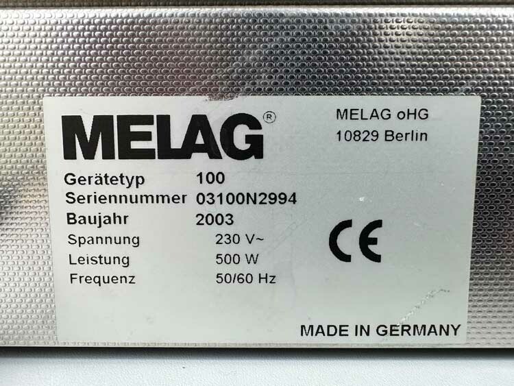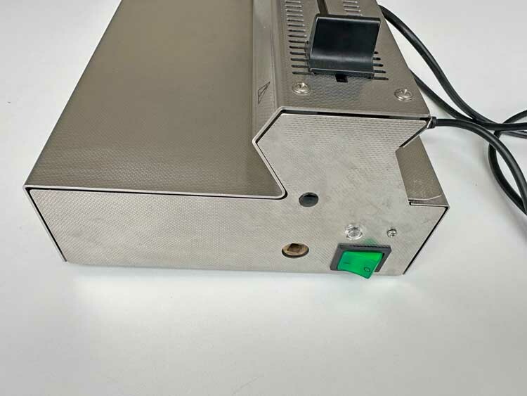 With the MelaSeal 100, you can easily make your own bags from rolls or seal existing bags with a sturdy, wide seam. Its smooth stainless steel finish makes it easy to clean. Built in 2003. Heats and functions well. Warranty: 4 weeks. Product is non-returnable.