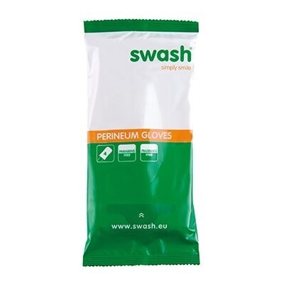 The Swash® Perineum Gloves are moist washcloths impregnated with a skin-protecting, perfume-free lotion containing 3% Dimethicone. Thanks to the 3-in-1 effect – cleaning, caring and protecting – the right incontinence care can be performed comfortably and quickly and the sensitive skin is offered the care it needs. The soft but strong washcloth guarantees a skin-friendly cleaning where even hard / grainy stools are easily removed.